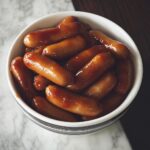 For a fun twist, serve the little smokies in mini skewers or decorative toothpicks, ideal for easy grabbing at parties. You can also try placing them in a bread bowl lined with melted cheese or stuffing them into puff pastry for a bite-sized twist.