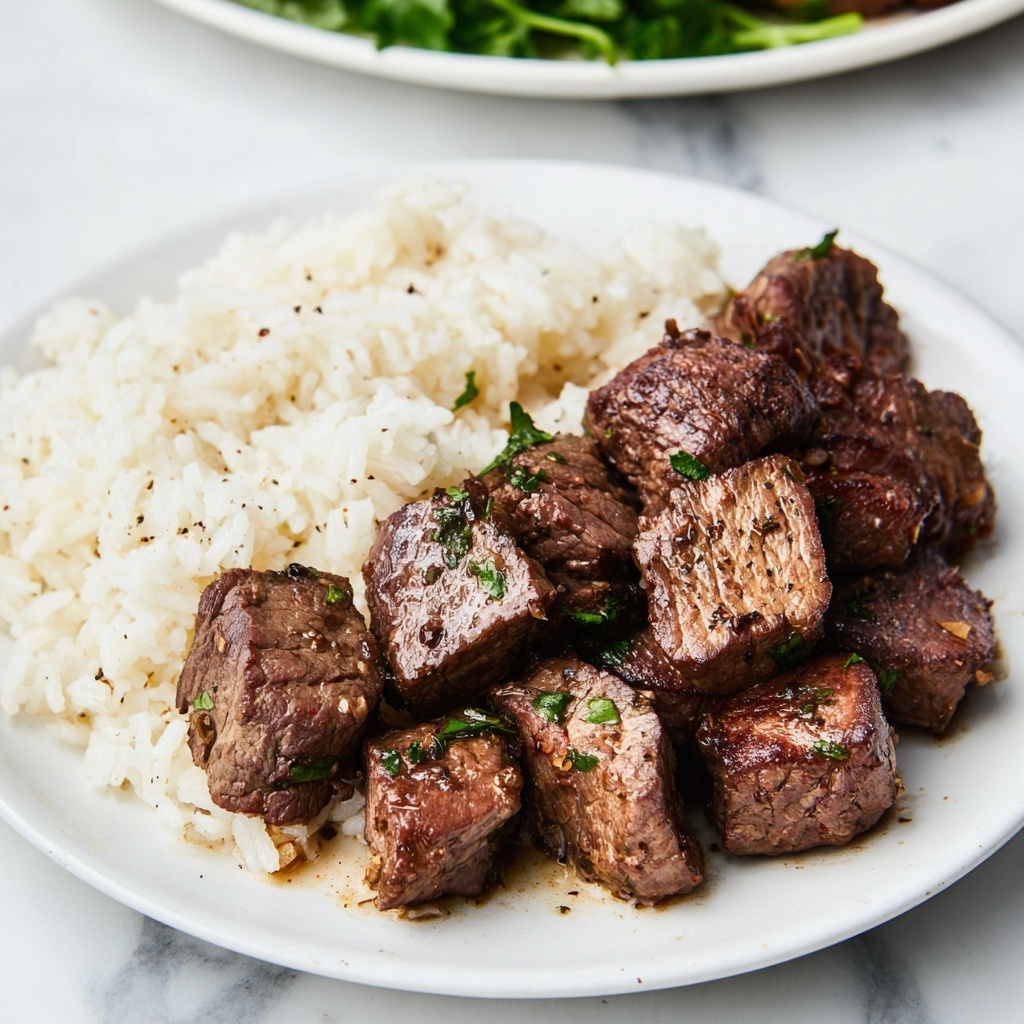 A sprinkling of chopped parsley or fresh herbs adds a vibrant pop of color and a slight herbal brightness that cuts through the richness of the steak bites perfectly.