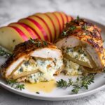 A flavorful and elegant dish featuring juicy chicken breasts stuffed with sweet apple slices and creamy Brie cheese, infused with a honey-Dijon mustard glaze and dried thyme, then seared and baked to perfection. Finished with a savory pan sauce made from chicken broth and butter, this recipe offers a perfect balance of sweet and savory flavors ideal for a comforting yet sophisticated meal.
