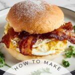 For brunch parties, serve your Bacon Gouda Starbucks Breakfast Sandwich Recipe on a cute platter with small ramekins of spicy ketchup, aioli, or honey mustard for dipping. You can also slice them in halves or thirds for easy sharing.