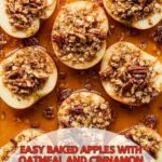Delightfully warm and comforting baked apples stuffed with a crunchy pecan and oat filling, spiced with cinnamon and cardamom, then baked until tender and served with a thickened, flavorful sauce. Perfect for a cozy dessert or a healthy snack.