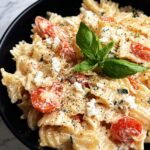 Baked Feta Pasta is a comforting and flavorful dish featuring roasted grape tomatoes and creamy baked feta cheese mixed with bow tie pasta. This simple, one-dish pasta recipe comes together easily in the oven, creating a luscious tomato feta sauce that’s perfect for a quick weeknight meal or casual dinner with friends.