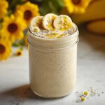 Sprinkle a pinch of dried chamomile leaves on top to give an elegant finish that enhances both aroma and visual appeal. You can also add a small banana slice on the rim of your glass for an inviting look that matches the smoothie’s flavors.