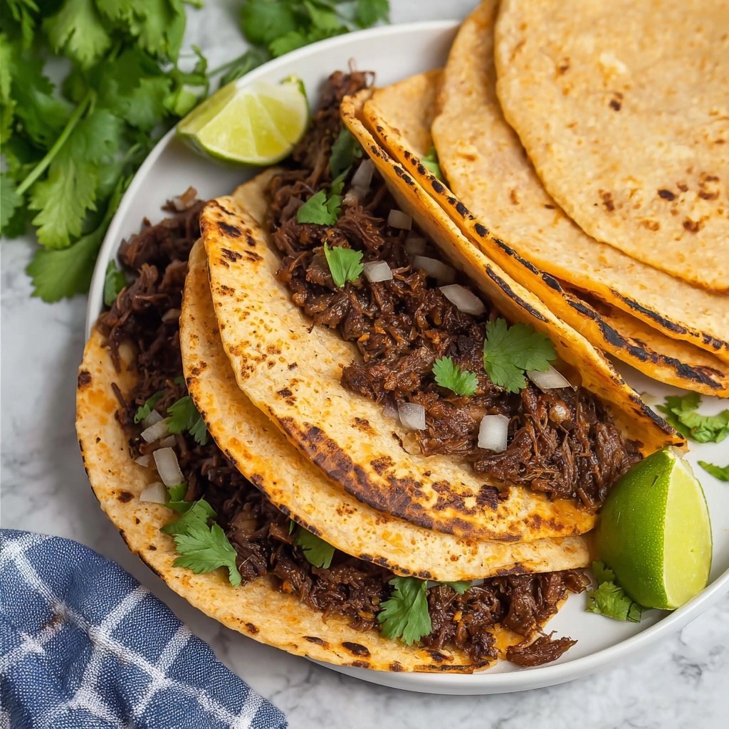 The right garnishes can elevate your Birria Tacos Recipe from delicious to unforgettable. The diced white onion offers a satisfying crunch and sharpness, while fresh cilantro adds a burst of green, herbal brightness. Don’t forget lime wedges—squeezing lime over your tacos before each bite cuts through the richness with a lively zing that refreshes your taste buds.