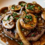 This Bobby Flay–Inspired Salisbury Steak recipe features juicy ground beef patties smothered in a rich mushroom and onion gravy. Perfectly seared and simmered to tender perfection, it’s a comforting classic dish ideal for a hearty family meal.