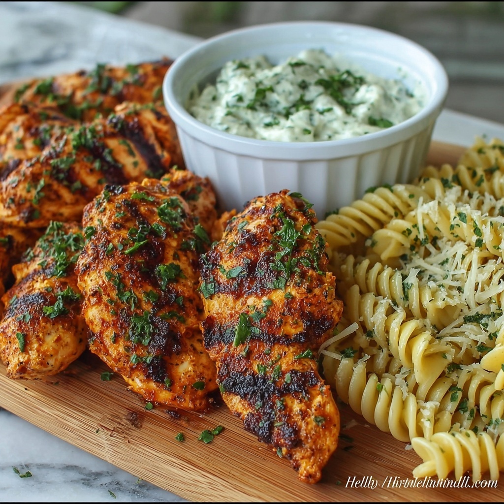 How to Serve Cajun Chicken Bites with Creamy Garlic Herb Alfredo Twists Recipe