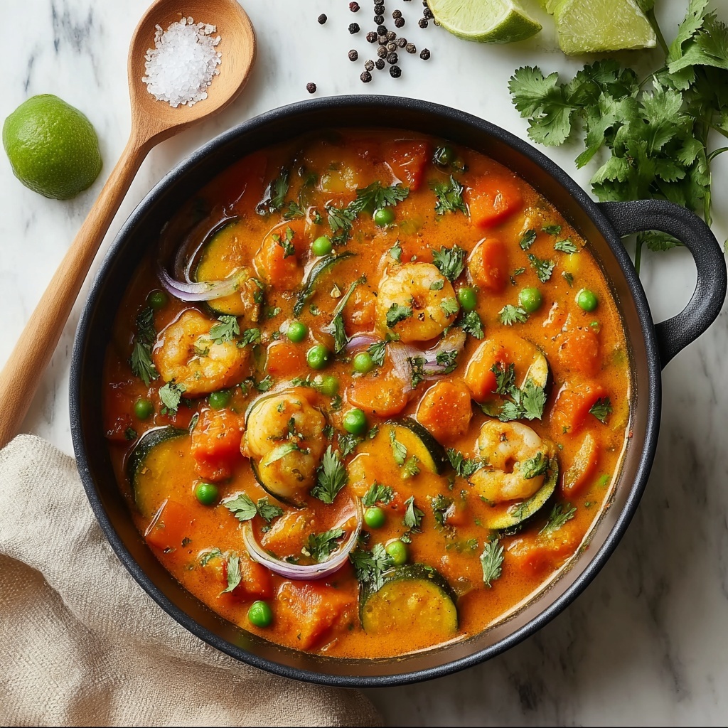 A flavorful and vibrant Caribbean Vegetable Curry featuring a colorful mix of fresh vegetables simmered in a fragrant blend of spices and creamy coconut milk. Perfect as a hearty vegan dish served with rice or naan, this recipe brings warm Caribbean spices to your kitchen with an easy stovetop method.