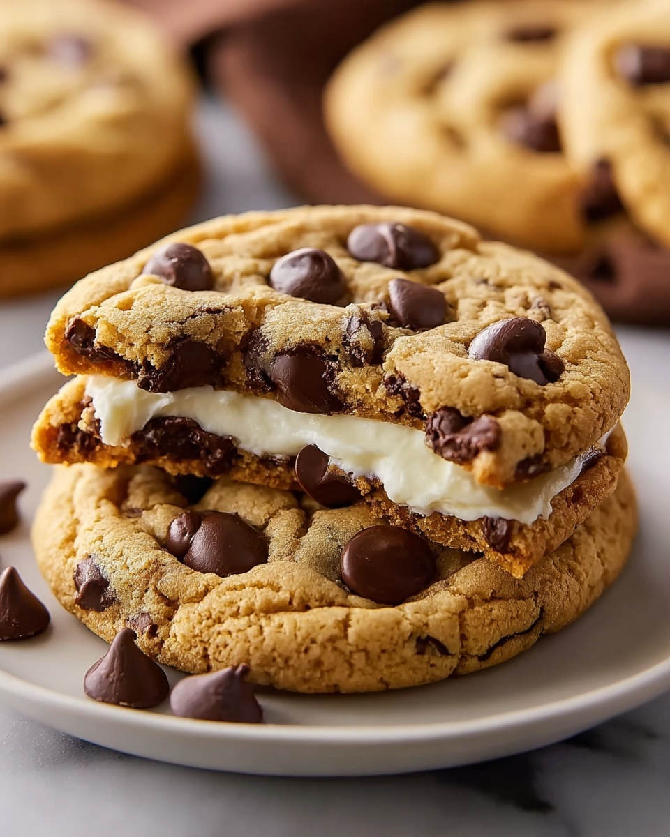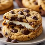 Deliciously soft chocolate chip cookies stuffed with a creamy cheesecake filling, combining the best of two classic desserts in one irresistible treat. These cheesecake-filled chocolate chip cookies offer a gooey center wrapped in a golden, tender cookie exterior—perfect for any occasion or sweet craving.