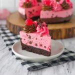 This Cherry Chocolate Chip Cheesecake is a decadent no-bake dessert featuring a crunchy Oreo crust, creamy cherry-flavored cheesecake filling, and a luscious chocolate cherry frosting. Topped with sugared cherry gelée slices and mini chocolate chips, it’s a perfect treat for special occasions or anytime you crave a fruity, chocolatey delight.