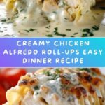 Chicken Alfredo Roll-Ups are a comforting and delicious baked pasta dish featuring tender shredded chicken, creamy Alfredo sauce, and cheesy spinach-studded filling, all wrapped in al dente lasagna noodles and baked to golden perfection.