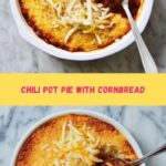 Once out of the oven, serve your Chili Pot Pie with Cornbread Crust Recipe immediately with shredded cheese and a dollop of sour cream for that perfect creamy contrast against the spicy chili and crumbly cornbread.