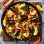 This classic Spanish Paella recipe features tender chicken, spicy chorizo, fresh seafood, and vibrant vegetables cooked in a saffron-infused rice. Prepared in a traditional paella pan or large skillet, it offers a perfect blend of smoky, savory, and fresh flavors ideal for a festive family meal or special occasion.
