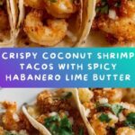 These Coconut Shrimp Tacos with Habanero Lime Butter combine crispy, golden coconut shrimp with a spicy, tangy butter sauce, wrapped in warm corn tortillas and topped with fresh cabbage and cilantro. Perfect for a quick, flavorful meal that brings a tropical twist to classic tacos.