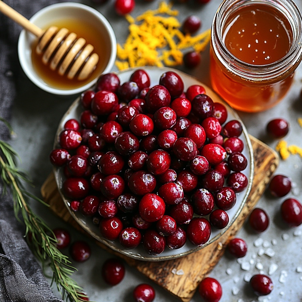 Start by combining the fresh orange juice, water, and honey in a medium saucepan. Bring the mixture to a boil, allowing the honey to melt smoothly and all the flavors to start melding together. Then gently reduce the heat to medium before adding the cranberries, finely chopped orange zest, and salt. This stage introduces the fruit and zest to the warming liquid, which draws out the tanginess and aromatic oils essential to the sauce’s character. Cook uncovered for about 10 to 12 minutes, stirring occasionally so nothing sticks to the pan, and watch as the cranberries pop open, releasing their juicy sweetness and thickening the sauce.