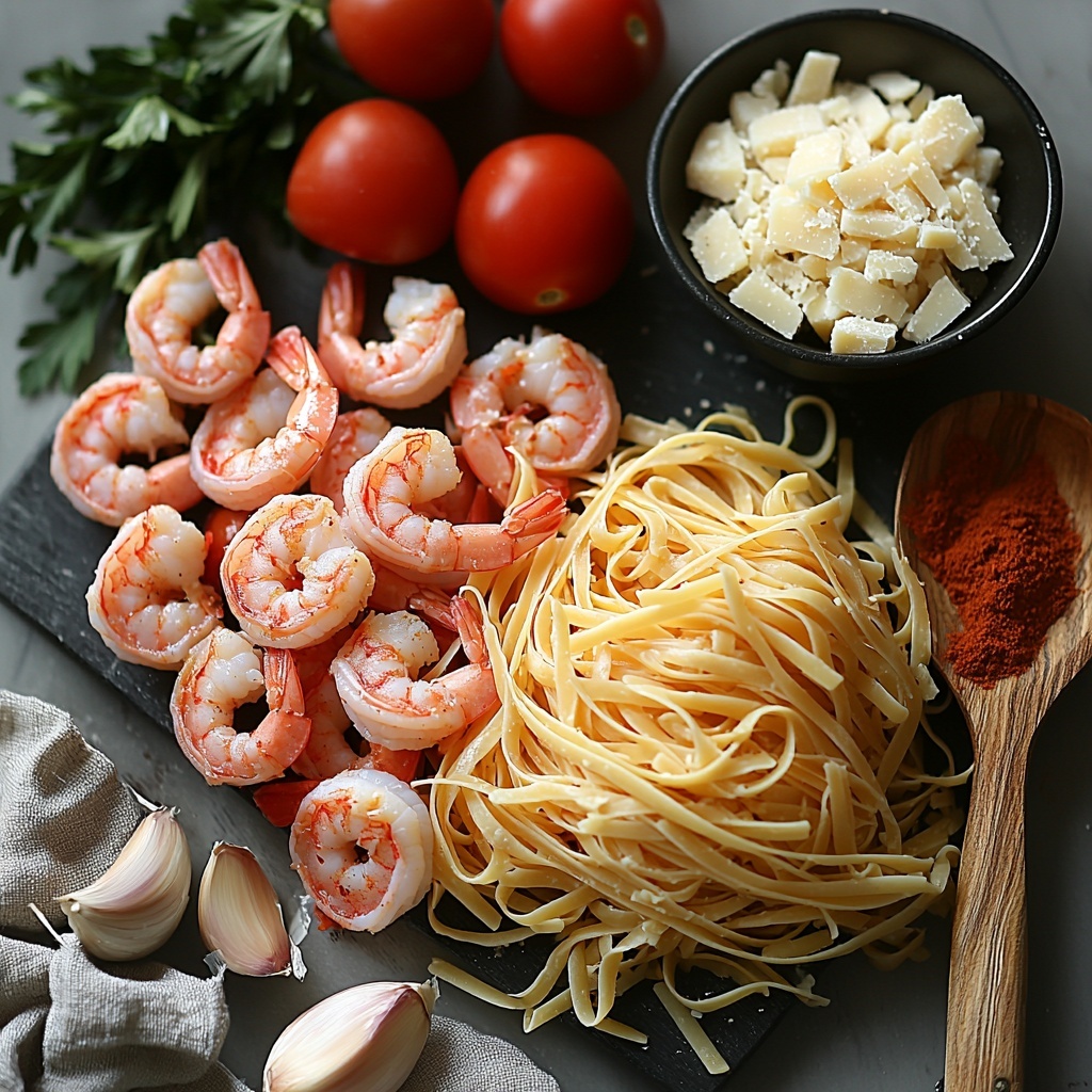 A rich and creamy Cajun shrimp pasta combining succulent, seasoned shrimp with al dente linguine, simmered in a luscious half-and-half and Parmigiano Reggiano sauce, enhanced with fresh garlic, diced tomatoes, and a hint of Cajun spice for a flavorful, comforting meal.