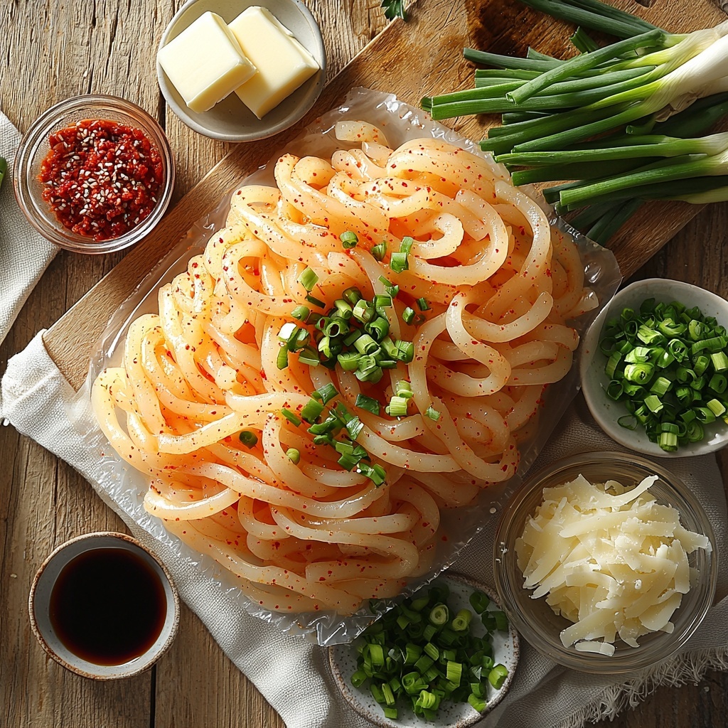 Serve the noodles piping hot, topped with a sprinkle of chopped green onions and, if you dare, a dusting of grated parmesan for a delightful melt-in-your-mouth finish. This final touch adds an unexpected savory depth that beautifully complements the spicy, creamy goodness.