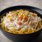 This Creamy Ranch Chicken & Noodles recipe combines tender chicken pieces with rich, flavorful ranch seasoning and a creamy Parmesan sauce, all simmered together with egg noodles for a comforting and easy-to-make weeknight dinner.