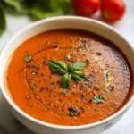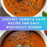 This creamy tomato soup recipe is a perfect quick and easy weeknight dinner. Featuring roasted fresh tomatoes blended with aromatic garlic and onions, the soup is enriched with heavy cream for a velvety texture and garnished with fresh basil for a burst of flavor. It’s comforting, flavorful, and wholesome, ready in just about 45 minutes.