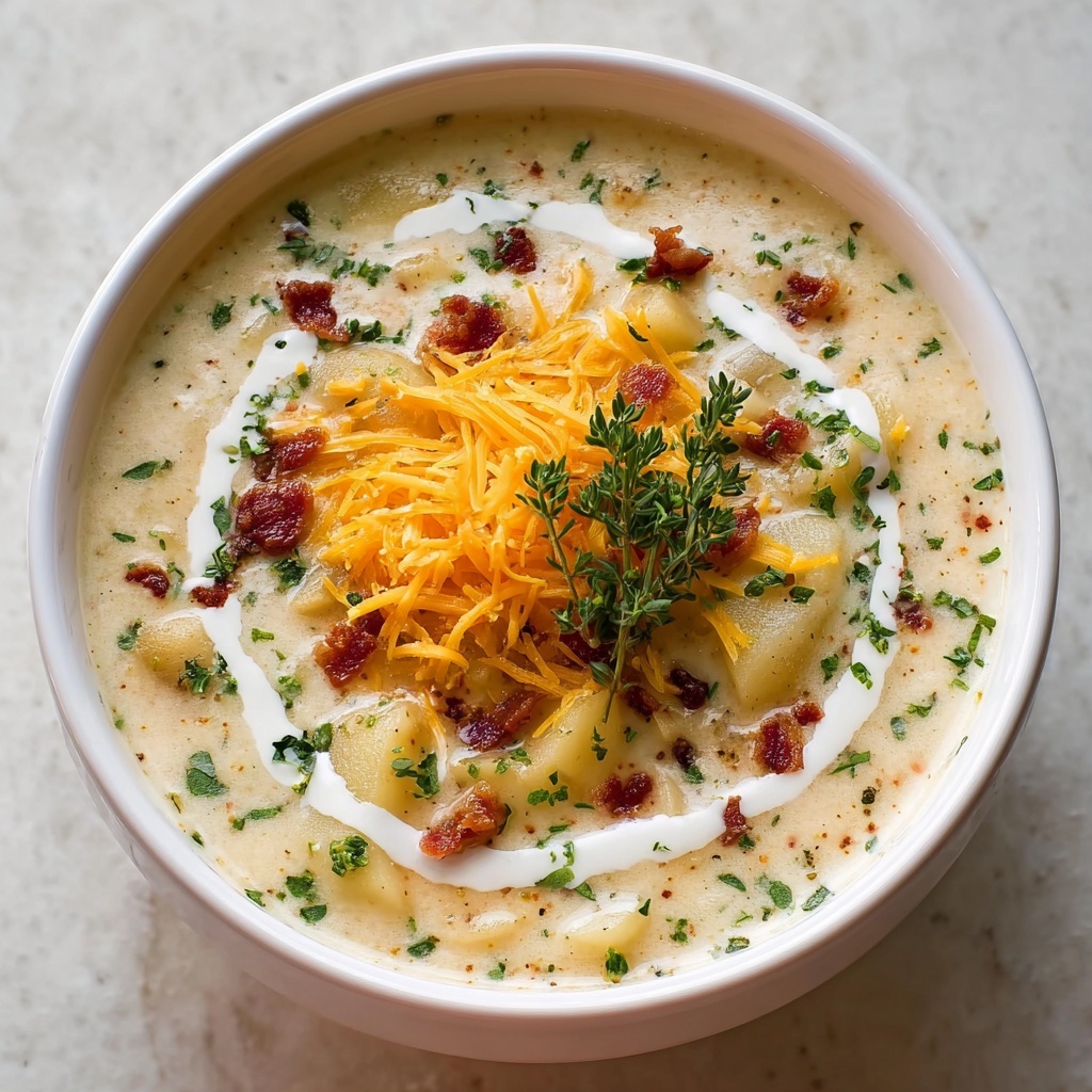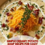 This Creamy Rustic Potato Soup is a comforting, hearty dish perfect for cozy meals. Made with tender potatoes simmered in a flavorful broth and blended to a luscious creamy texture, it’s enhanced with aromatic herbs and finished with rich cream and butter. Optional additions like cheddar cheese and bacon add an extra layer of indulgence, while fresh parsley provides a bright garnish.