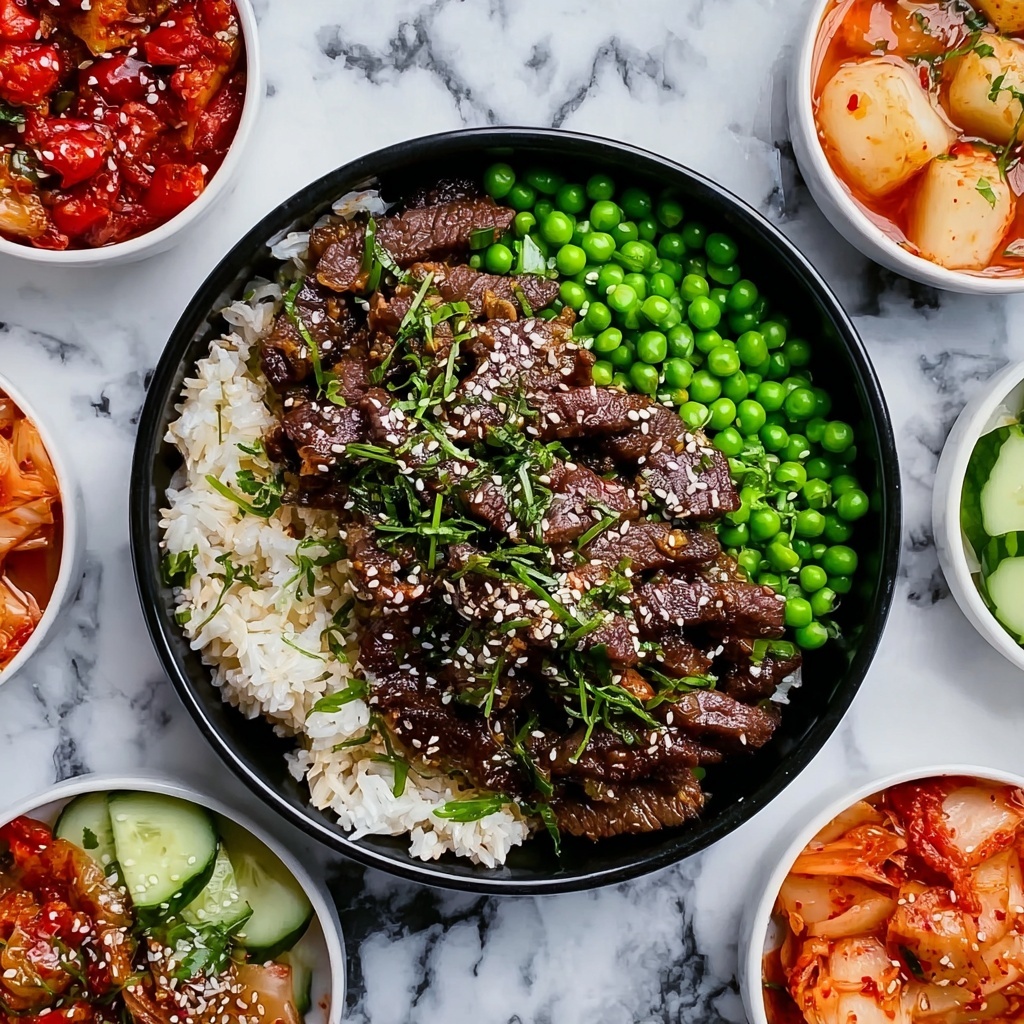- Assemble Bowls: Top the rice with the crispy beef slices, then garnish with sliced green onions and sesame seeds for added flavor and texture.