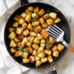Give the potatoes one last gentle toss and allow them to cook for an additional three minutes, or until you’ve reached your desired level of browning and crispiness. Serving these potatoes immediately delivers the best texture – crunchy on the outside with a tender interior. Garnish with a sprig of fresh rosemary if you want to add a pop of color and an extra fragrant hint.