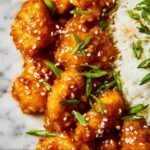 This Orange Chicken recipe features crispy bite-sized chicken pieces coated in a tangy, sweet, and slightly spicy orange sauce. The chicken is marinated, dredged in a seasoned cornstarch and flour mixture, then deep-fried to golden perfection before being tossed in a vibrant homemade orange glaze. Perfectly balanced with citrus zest, soy sauce, garlic, ginger, and heat from chili paste, this dish pairs wonderfully with steamed rice for a satisfying meal.