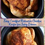 This Crockpot Rotisserie Chicken recipe offers a simple and convenient way to prepare a whole, juicy chicken with a flavorful seasoning mix. The chicken is slow-cooked on a bed of vegetables or foil balls to keep it elevated from the juices, resulting in tender meat with the option to finish under the broiler for a crispy skin. Perfect for an effortless, comforting meal.