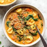 Crockpot Tortellini Soup with Sausage Recipe is freezer-friendly if you skip adding the tortellini and cream before freezing. Freeze the base soup separately, then add the pasta and cream fresh when you reheat to preserve texture and flavor.