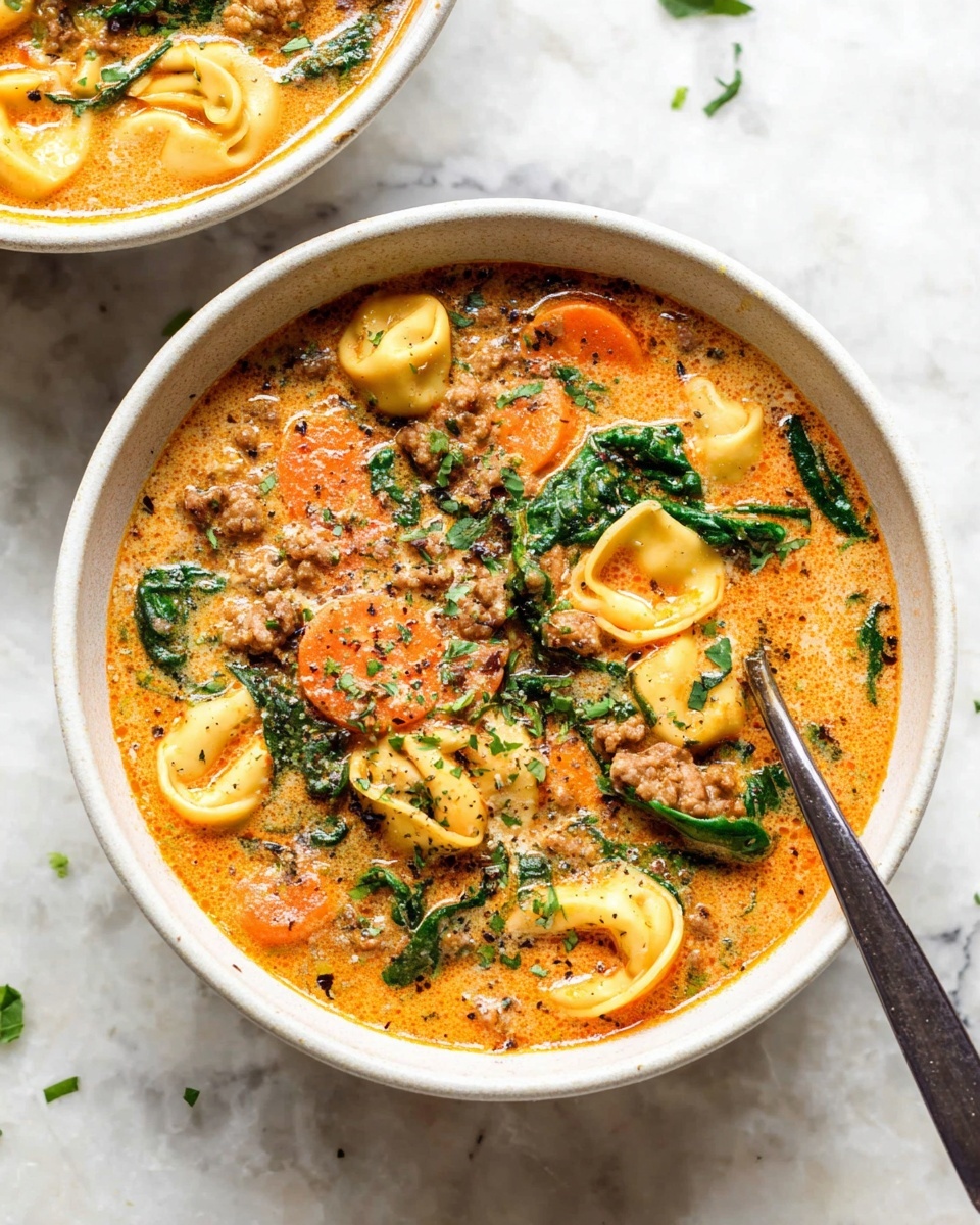 This Crockpot Tortellini Soup with Sausage is a hearty and comforting meal that combines savory Italian sausage, fresh vegetables, and tender cheese tortellini all simmered to perfection in a flavorful tomato and chicken broth base. Ideal for a slow-cooked dinner, this soup delivers rich taste with minimal effort, and the addition of spinach and a splash of cream adds a fresh and creamy twist.