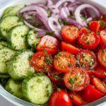 A fresh and vibrant Cucumber Tomato Salad that combines crisp cucumber, juicy tomatoes, and a zesty homemade dressing. Perfect as a light side dish or a refreshing appetizer, this salad is quick to prepare and ideal for warm weather meals.