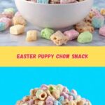 Easter Puppy Chow is a festive and colorful snack mix combining crispy Rice Chex cereal coated in vibrant pastel white chocolate, mixed with a creamy peanut butter and white chocolate coating, powdered sugar, and mini marshmallows. Perfect for Easter celebrations, this no-bake treat is sweet, crunchy, and easy to make.
