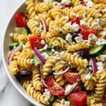 Yes, the Easy Greek Pasta Salad Recipe is perfect for meal prepping. Just keep the dressing separate until just before serving if you want to maintain the freshest crunch from the vegetables, or toss it all together ahead of time for flavor that deepens as it rests.