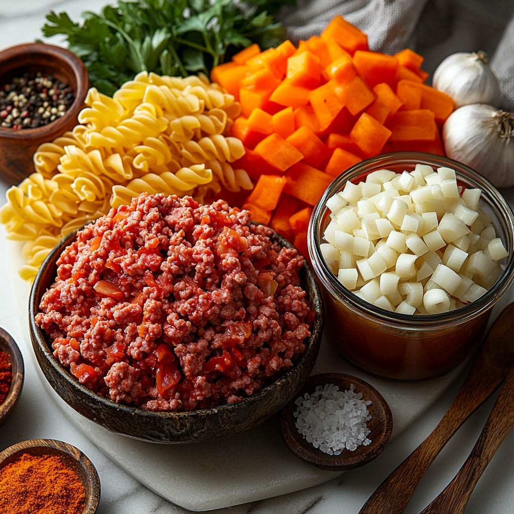 The beauty of this Easy Hamburger Noodle Soup Recipe lies in its simplicity. Each ingredient brings something special to the pot — from the savory ground beef providing a meaty base, to the fresh vegetables adding color and vitamins, all topped off with noodles that soak up the delicious broth perfectly.