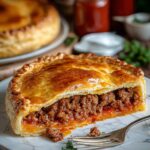 - Assemble Pie: Roll out one pie crust and place it in a pie dish. Pour the beef mixture into the crust, then sprinkle the shredded cheddar cheese evenly on top. Cover with the second pie crust, sealing the edges securely.