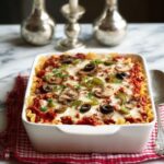 This Easy Supreme Pizza Casserole is a comforting, crowd-pleasing dish that combines classic pizza flavors with creamy cheese sauce and tender pasta. Featuring savory Italian sausage, fresh vegetables, pepperoni, olives, and a cheesy blend of mozzarella and Parmesan, it’s a hearty, baked casserole perfect for family dinners or casual gatherings.