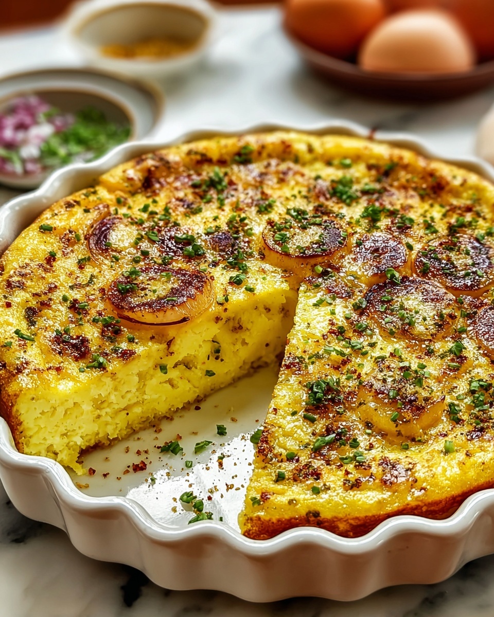 Try dividing the casserole into individual ramekins for an elegant brunch setting, or pack it as a savory takeaway breakfast. For extra flair, layer thin slices of zucchini or tomatoes between the eggs before baking or add a sprinkle of za’atar spice on top to give your Egga: Egyptian Egg Casserole with Onions and Herbs Recipe a unique twist that guests will adore.