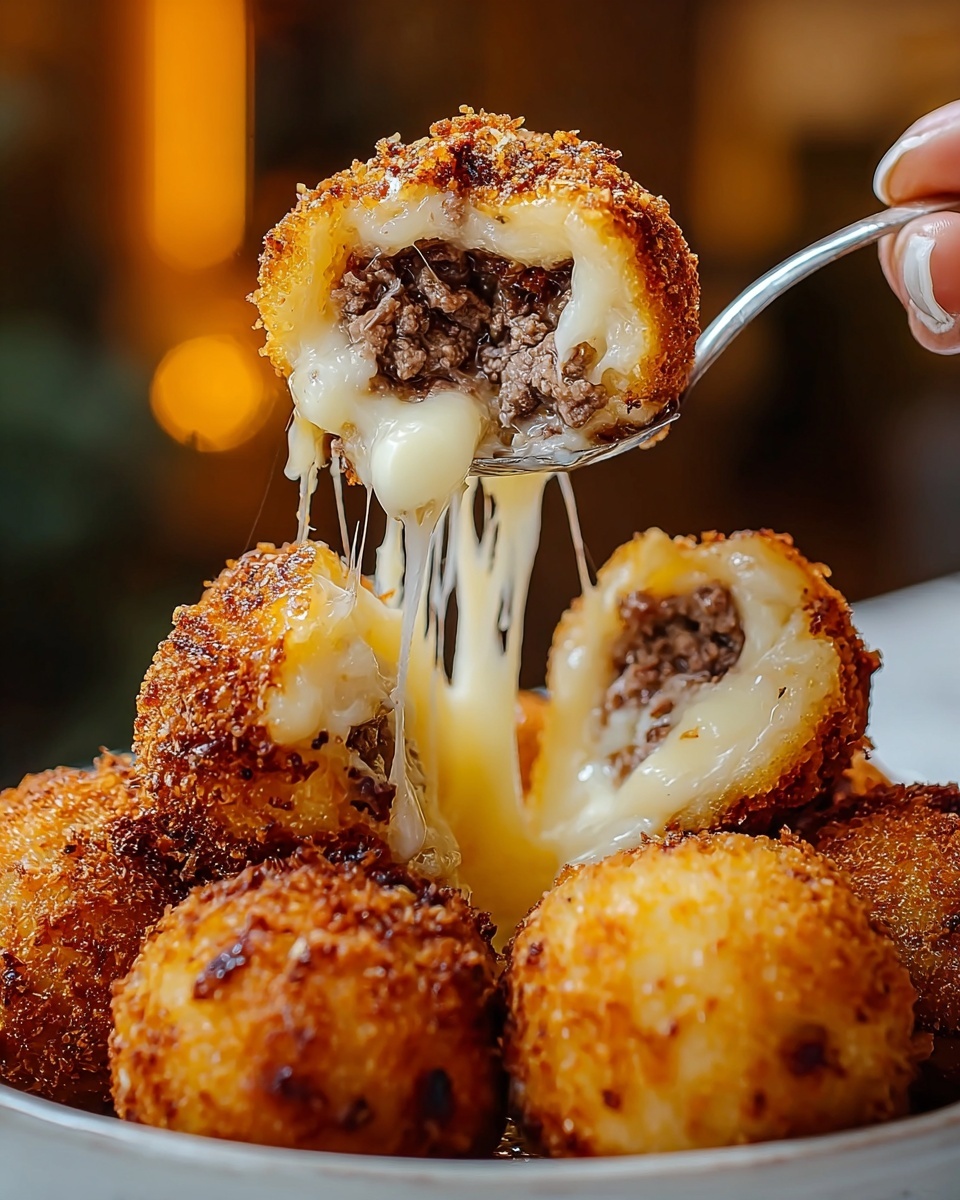 These golden bites of fried cheesy ground beef balls are best enjoyed hot while the cheese is still deliciously molten inside. They’re ready to be shared and savored with your favorite sides or dipping sauces.