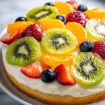 - Add the Fruit Topping: Arrange the fresh fruits on top of the frosting, using a variety of colorful fruits for a beautiful presentation. You can mix and match based on your preferences!