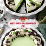 This Grasshopper Pie recipe is a luscious no-bake dessert featuring a minty Oreo crust, a creamy filling flavored with Crème de Menthe and Crème de Cacao liqueurs, and topped with whipped cream and crushed mint Oreos. It’s a refreshing and indulgent treat perfect for any occasion.