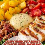 These Greek Feta Roast Potatoes are a delicious and easy-to-make side dish featuring crispy, golden potatoes seasoned with oregano and garlic, then topped with tangy crumbled feta cheese, fresh lemon juice, and vibrant parsley for a Mediterranean twist.
