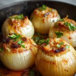 For a more elegant presentation, serve each stuffed onion nestled on a plate with a drizzle of the rich tomato sauce around it and a lemon wedge on the side for an extra kick. If you’re feeling festive, place a dollop of tangy Greek yogurt or tzatziki on top to balance the richness with cool creaminess.