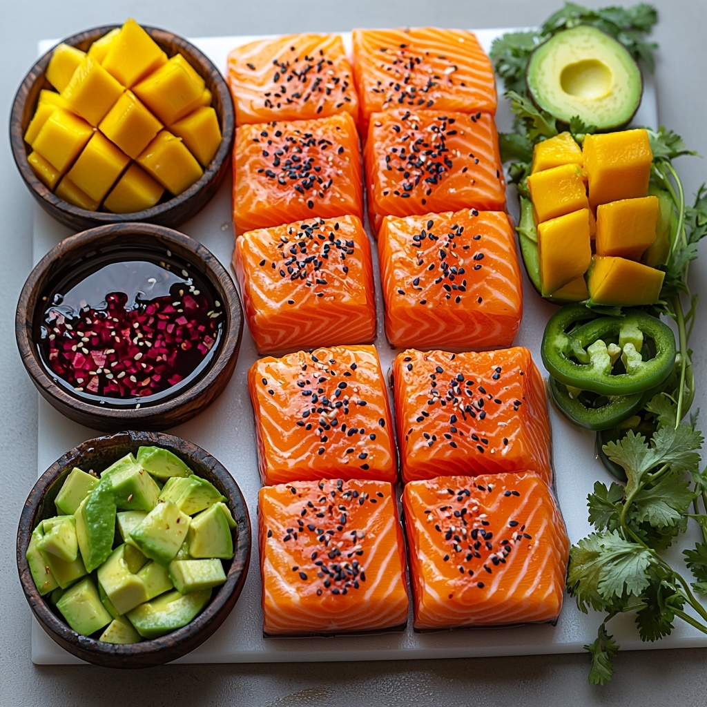 - Prepare the salsa: While the salmon marinates, dice the avocado, mango, red bell pepper, and red onion. Chop the fresh cilantro and finely chop the jalapeño if you like some heat. Combine all these salsa ingredients in a bowl, add lime juice and salt to taste, then mix gently ensuring the avocado remains chunky and intact.