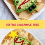 For a modern twist, try serving the guacamole on a slab of marble or wooden board shaped like a Christmas tree with the garnishes arranged artfully around it. You can even add some edible glitter or pomegranate seeds as “snow” or extra “ornaments” for a dazzling holiday effect.