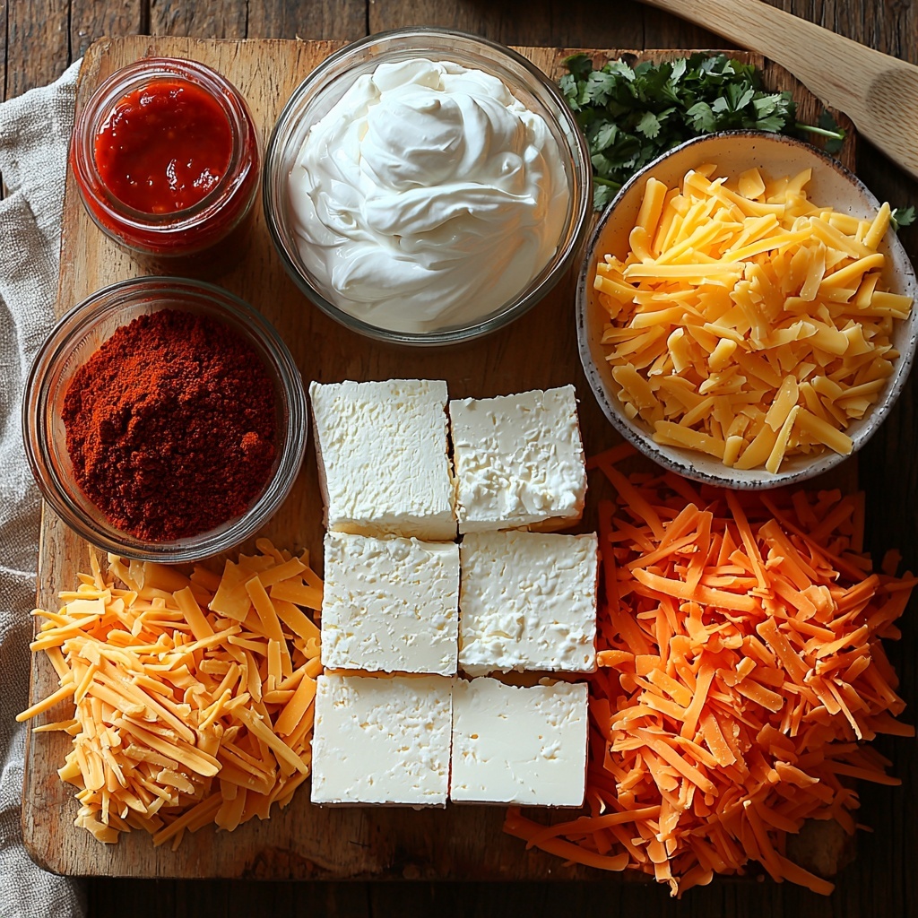Getting the ingredients right is key to making this dip shine. Each element adds something special, from creamy richness and tangy zest to fiery heat and melty cheesiness that makes each bite unforgettable.