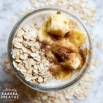 Pop the frozen banana, rolled oats, cinnamon, milk of choice, and vanilla Greek yogurt into your blender. Pulse or blend until the texture is creamy and smooth, with no lumps of oats or banana chunks left behind. This usually takes about 30 to 60 seconds depending on your blender.