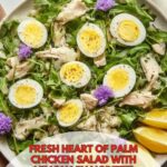 A fresh and vibrant Heart of Palm Salad featuring peppery arugula, protein-packed chicken breast, and tender heart of palm slices, perfectly complemented by a zesty lemon vinaigrette and garnished with chopped chives and optional chive blossoms. This salad is quick to prepare, nutritious, and ideal for a light lunch or dinner.