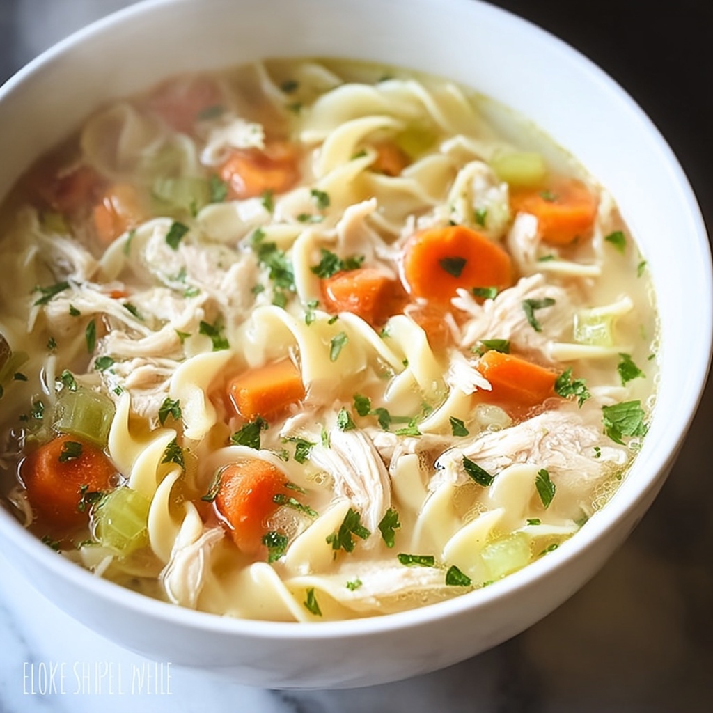 A comforting and hearty Homemade Chicken Noodle Soup made with tender chicken breasts, fresh vegetables, egg noodles, and aromatic herbs simmered to perfection. Perfect for warming up on cold days or when you need a nourishing meal.