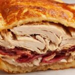 This Homemade Costco Chicken Bake recipe recreates the beloved deli favorite with a delightful blend of shredded chicken, mozzarella and cheddar cheeses, ranch dressing, and Italian seasonings wrapped in crispy baked pizza dough. It’s an easy-to-make, savory stuffed pastry perfect for a satisfying meal or snack.