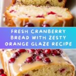 This Homemade Cranberry Bread With Fresh Orange Glaze Recipe is more than just a simple quick bread. It’s a celebration of fresh, vibrant flavors that come together to create a comforting yet exciting treat. Whether you bake it for yourself or as a gift, it’s sure to bring joy and warmth to any occasion. So preheat your oven, invite the aroma of fresh orange and cranberries into your kitchen, and enjoy every delicious slice!