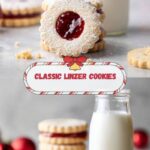 For a festive touch, arrange your Linzer cookies in a decorative tin layered with parchment paper, or stack them prettily on a tiered dessert stand. Wrap stacks in cellophane tied with ribbon if gifting—nothing says homemade love quite like these charming cookies!